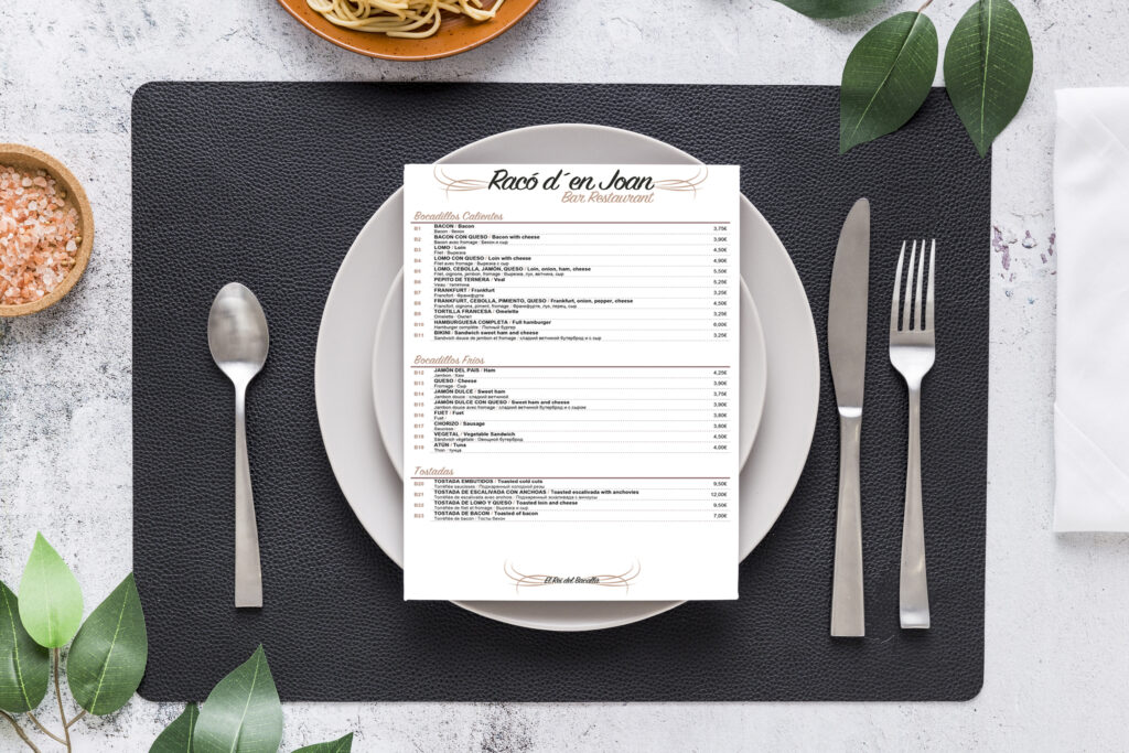 Cuando Joan nos hablo para cambiar la imagen de su restaurante, quisimos empezar por renovar el logotipo, tras estudiarlo, pusimos ideas en común, y recopilamos la información, fuentes y colores, con el fin de mantener una imagen e identidad en concordancia, fortalecerla y hacerla más profesional. Con su aprobación,  nos pusimos a trabajar, tras la presentación de varias propuestas, esta fue la selección final.